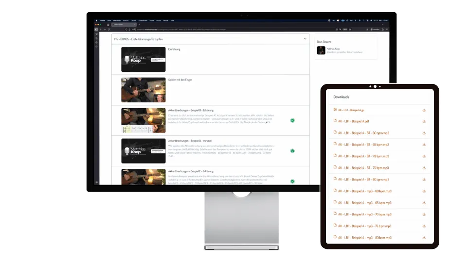 📄 Tabs, MP3s & Übematerial: Unterstützende Materialien helfen dir, sicher zu üben und schneller Fortschritte zu machen.