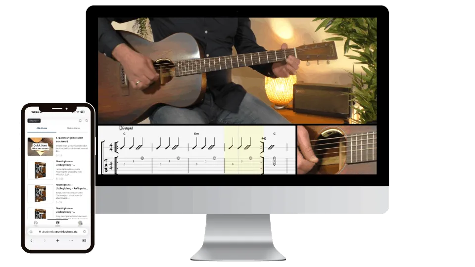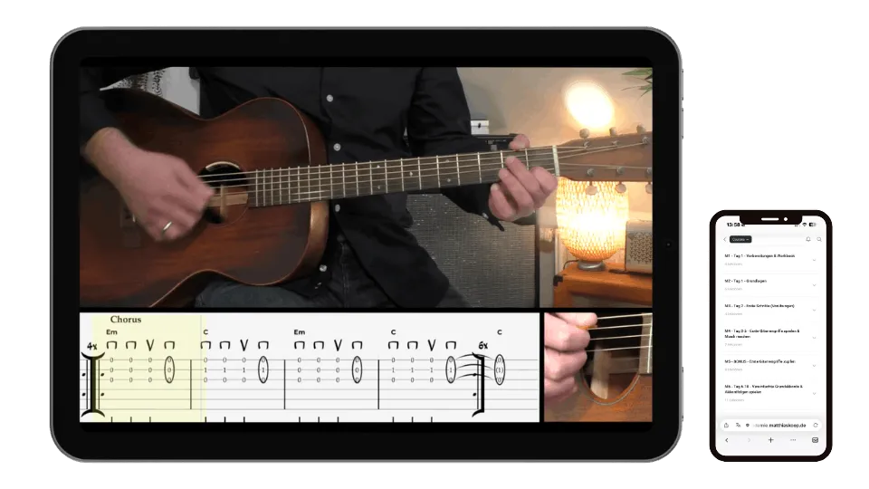 Du lernst in diesem Kurs nicht nur trockene Grundlagen, sondern entwickelst von Anfang an ein echtes Spielgefühl für die Gitarre.